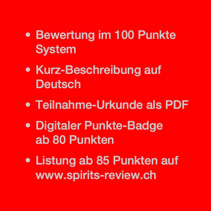 - Listung auf spirits-review.ch (ab 85 Punkten)