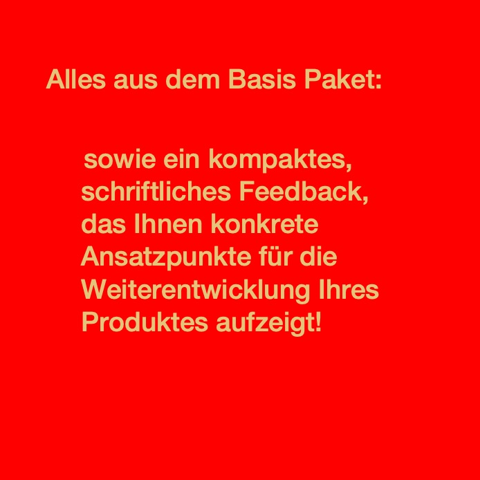 ein kompaktes, schriftliches Feedback, das Ihnen konkrete Ansatzpunkte für die Weiterentwicklung Ihres Produkts aufzeigt.